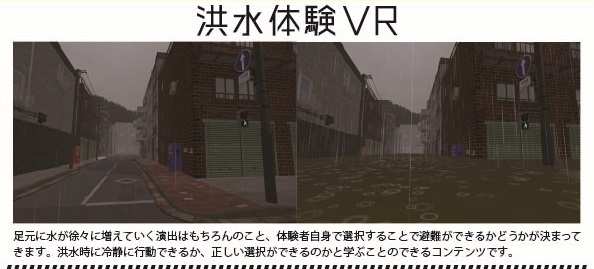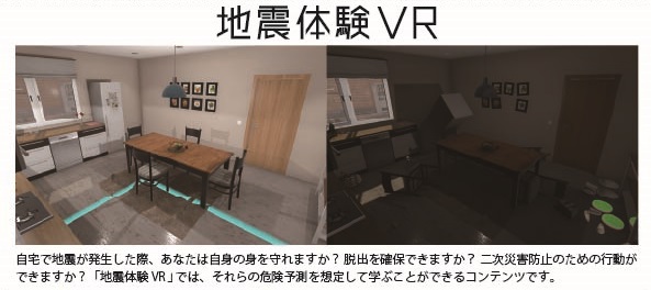こちらの、地震がおきたときの避難をするまでの行動をVRで体験していただくコンテンツになります。